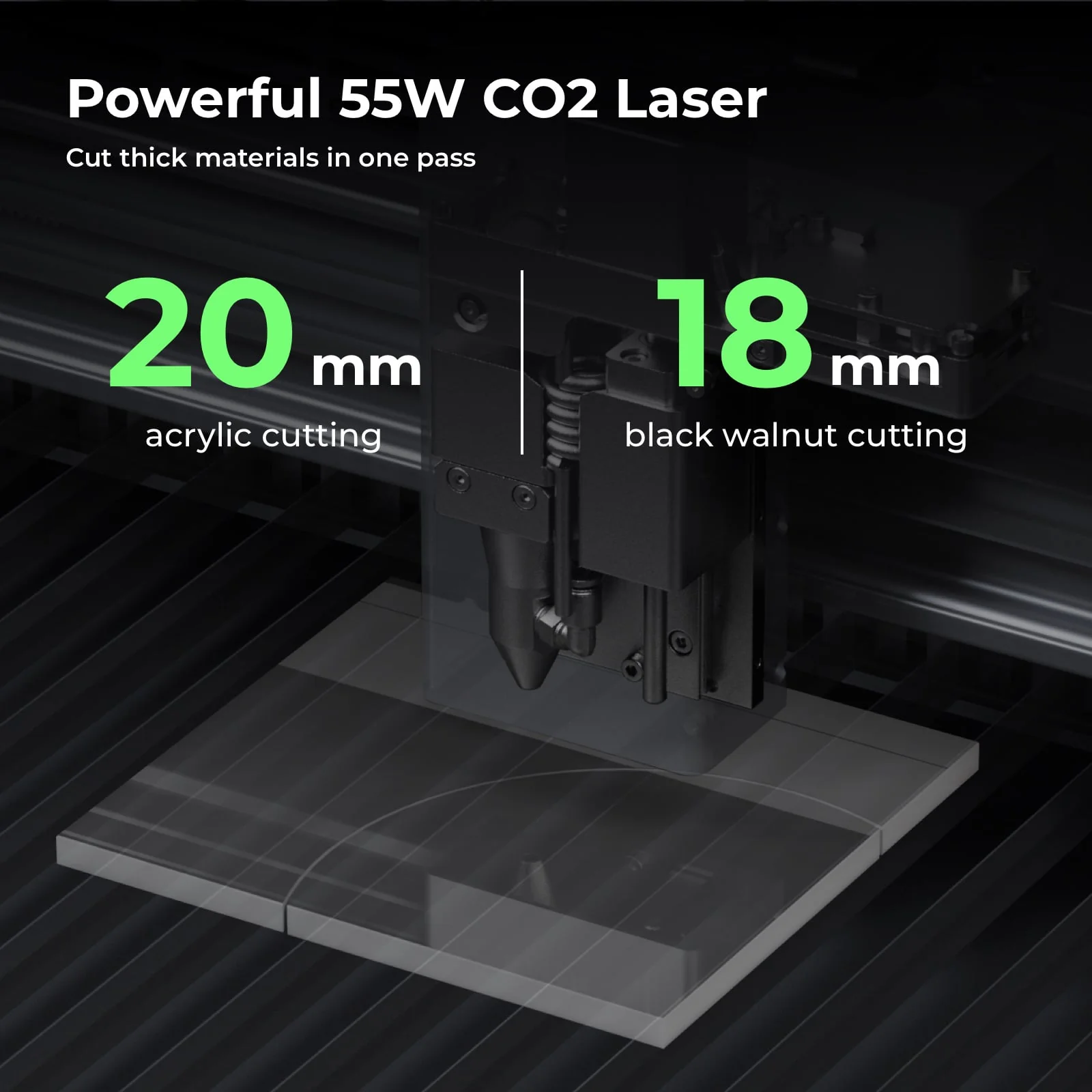 - Cutting Beast: Cuts all-color acrylic (20mm in one pass), wood, leather, and more.