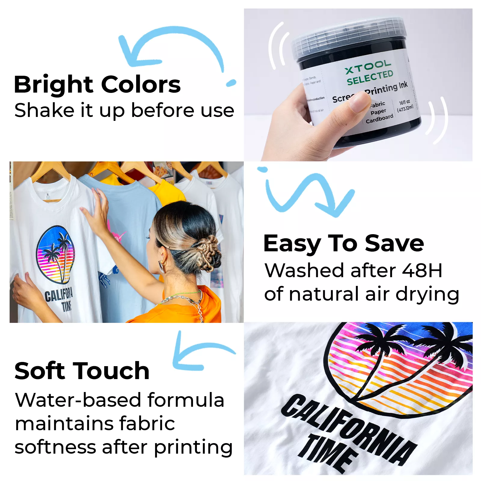 - Easy to Use and Process. Screen Printing Ink Set is incredibly easy to work with. Before use, simply give the ink a good stir to ensure smooth consistency. After screen printing, allow your designs to air dry naturally for 48 hours before washing.